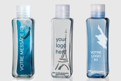 Bouteille personnalisée pour hôtels, un objet pub pour vos clients et pour limiter votre production de déchets. Suppression de l’usage unique